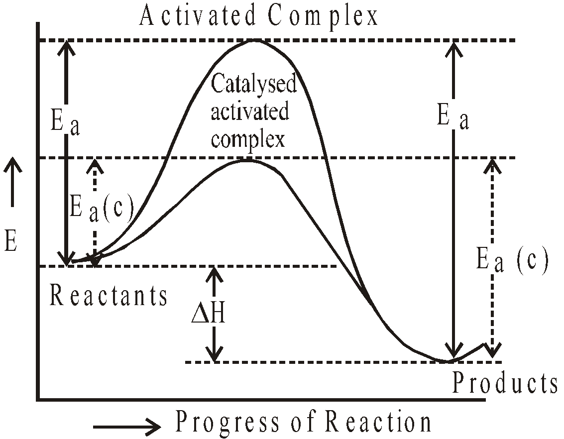 - Energy of activation is lowered considerably for catalysed forward and backward reactions.