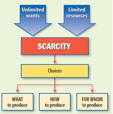 Scarcity = Unlimited wants + Limited resources