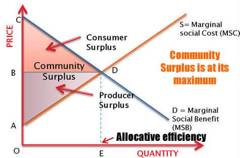 - This ensures maximum social surplus.