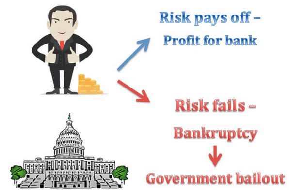 Moral hazard occurs when one party changes behaviour after a transaction because they do not bear the full consequences of their actions.