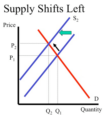 - Supply curve shifts left.
