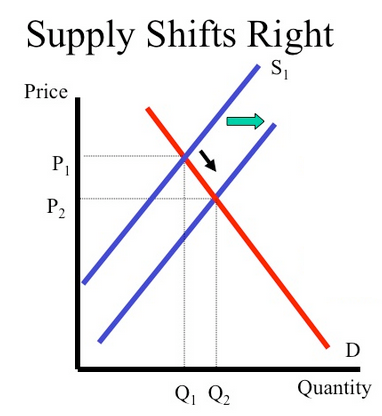 - Supply curve shifts right.