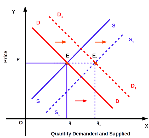 Case 1: Both Demand and Supply Increase (Rightward Shifts)