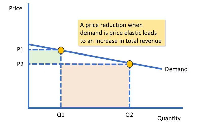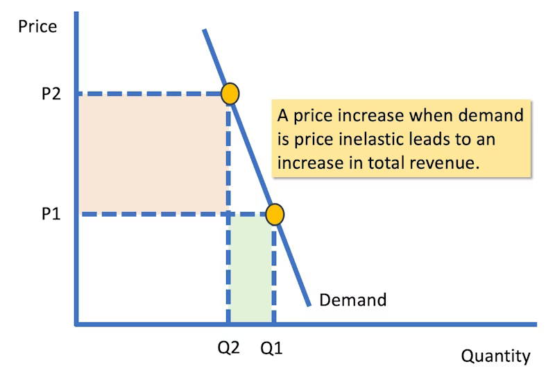 Diagram: showing changes in revenue as a result of price changes when demand is price elastic and price inelastic