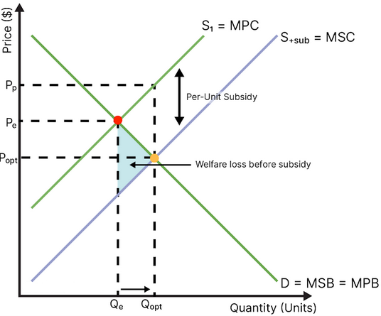 A subsidy is a payment by the government to producers or consumers to encourage production or consumption.