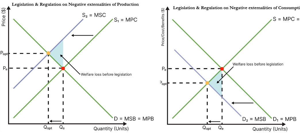 - Governments set limits on harmful behaviour (e.g. pollution caps).