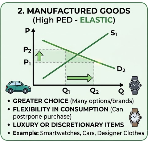 IB DP Economics -Unit 2 – Lower PED: primary vs manufactured goods – Study Notes -IB DP Economics – per latest Syllabus.