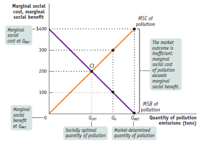 - Social optimum occurs where \( \mathrm{MSB = MSC} \).