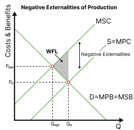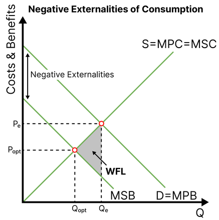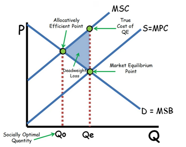 - \( \mathrm{MSC > MSB} \) → overproduction → welfare loss.