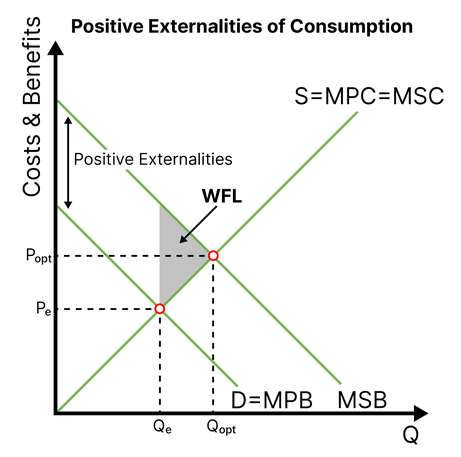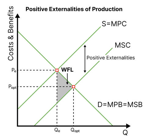 Positive externalities occur when the consumption or production of a good creates external benefits to third parties.