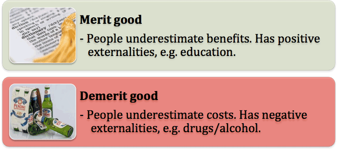 Merit goods are goods that are underconsumed in a free market because consumers underestimate their true benefits.