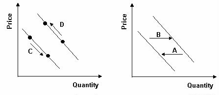 This shows that price changes cause movement, while other factors cause shifts.