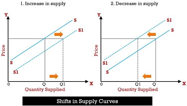 | Example | Price rise → more supplied | Tax increase → supply decreases |