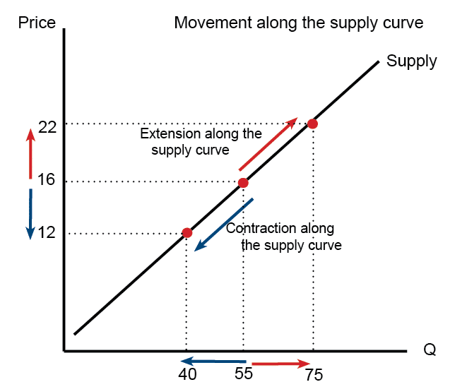 - Shown as movement from one point to another on the same supply curve.