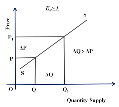 Relatively Elastic | \( \mathrm{PES > 1} \) | Large change in quantity supplied |