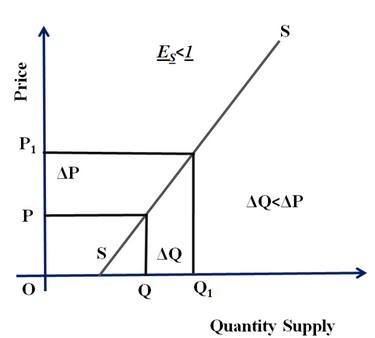 Relatively Inelastic | \( \mathrm{0 < PES < 1} \) | Small change in quantity supplied |