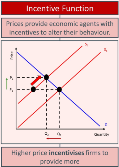 The incentive function refers to how price changes motivate producers and consumers to change their behaviour.