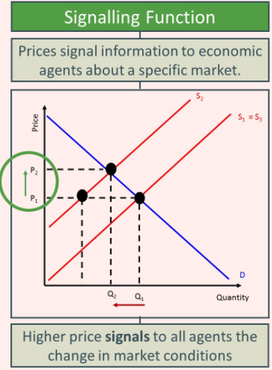 The signalling function refers to the role of prices in conveying information about changes in demand and supply.