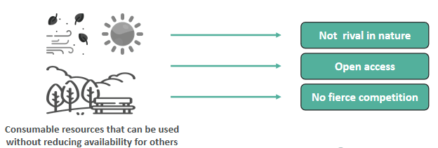 - Consumption by one person does not reduce the amount available for others.