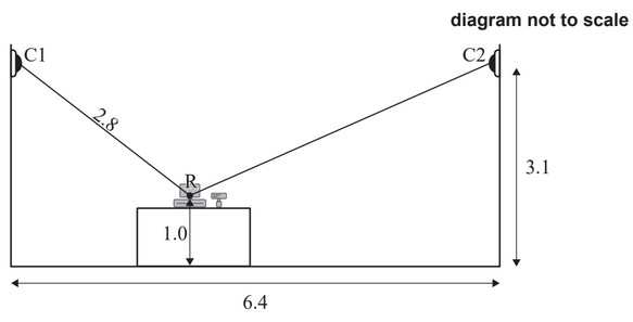 cameras is 6.4m. The cash register is sitting on a counter so that its centre, R, is 1.0m
