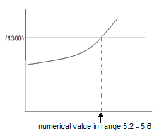 Note: Award (M1) for a sketch with a straight line intercepted by appropriate curve, (A1) for a numerical answer in the range \(5.2-5.6\).