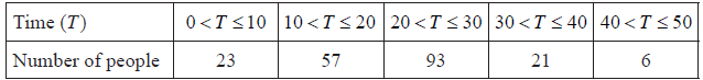Note: (M1) is for a sum of (frequencies multiplied by midpoint values) divided by candidate’s answer from part (a). Accept mid-points 25.5, 35.5 etc or 24.5, 34.5 etc, leading to answers 70.0 or 69.0 (3sf) respectively. Answers of 69.0, 69.5 or 70.0 (3sf) with no working can be awarded (G1).[5 marks]