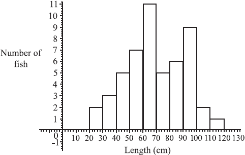 The figure below shows the lengths in centimetres of fish found in the net of a small trawler.