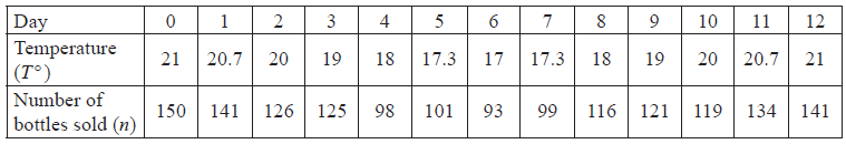 On a day when the temperature was \({36^ \circ }\) Peter calculates that \(314\) bottles would be sold. Give one reason why his answer might be unreliable.[1]