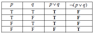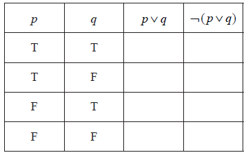 Complete the truth table below for the symbolic statement \(\neg (p \vee q)\) .