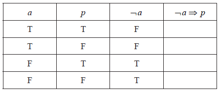 \(\neg q \Rightarrow p\) (A1)(A1) (C2)