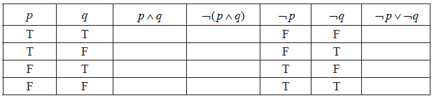 (ii) State whether the compound propositions \(\neg (p \wedge q)\) and \(\neg p \vee \neg q\) are equivalent.[4]