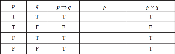 State the relationship between the compound propositions \(p \Rightarrow q\) and \(\neg p \vee q\) .[1]