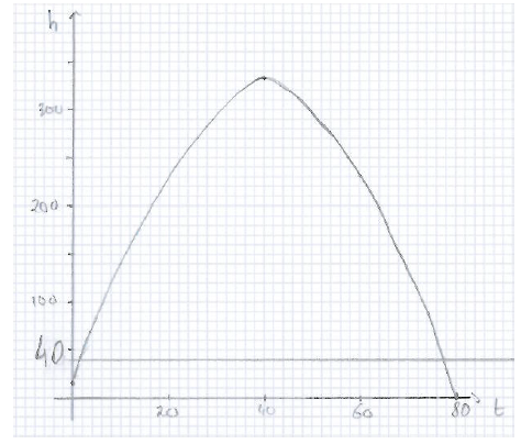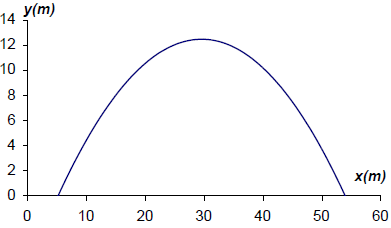 Draw a graph showing the path of the football from the point where it is kicked to the point where it hits the ground again. Use 1 cm to represent 5 m on the horizontal axis and 1 cm to represent 2 m on the vertical scale.[4]
