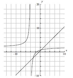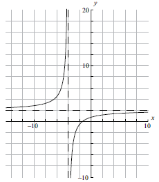 Sketch the graph of the function \(f(x)\), for \( – 10 \leqslant x \leqslant 10\) . Indicating clearly the axis intercepts and any asymptotes.[6]