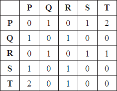 The graph G has vertices P , Q , R , S , T and the following table shows the number of edges joining each pair of vertices.