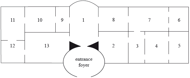 hence it is possible to enter the museum through the foyer and visit each room 1–13 going through each internal doorway exactly once AG