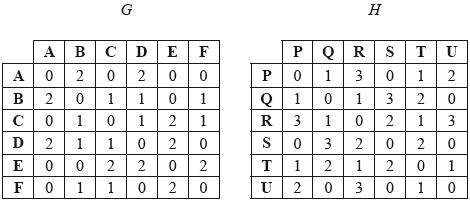 (b) Let G and H be two graphs whose adjacency matrices are represented below.