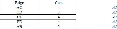 Note: Award each A1 for the edge added in the correct order. Award no further marks after the first error.