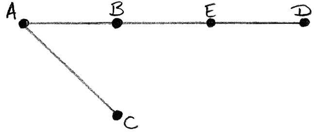 {}&{\text{A}}&{\text{B}}&{\text{C}}&{\text{D}}&{\text{E}} \\