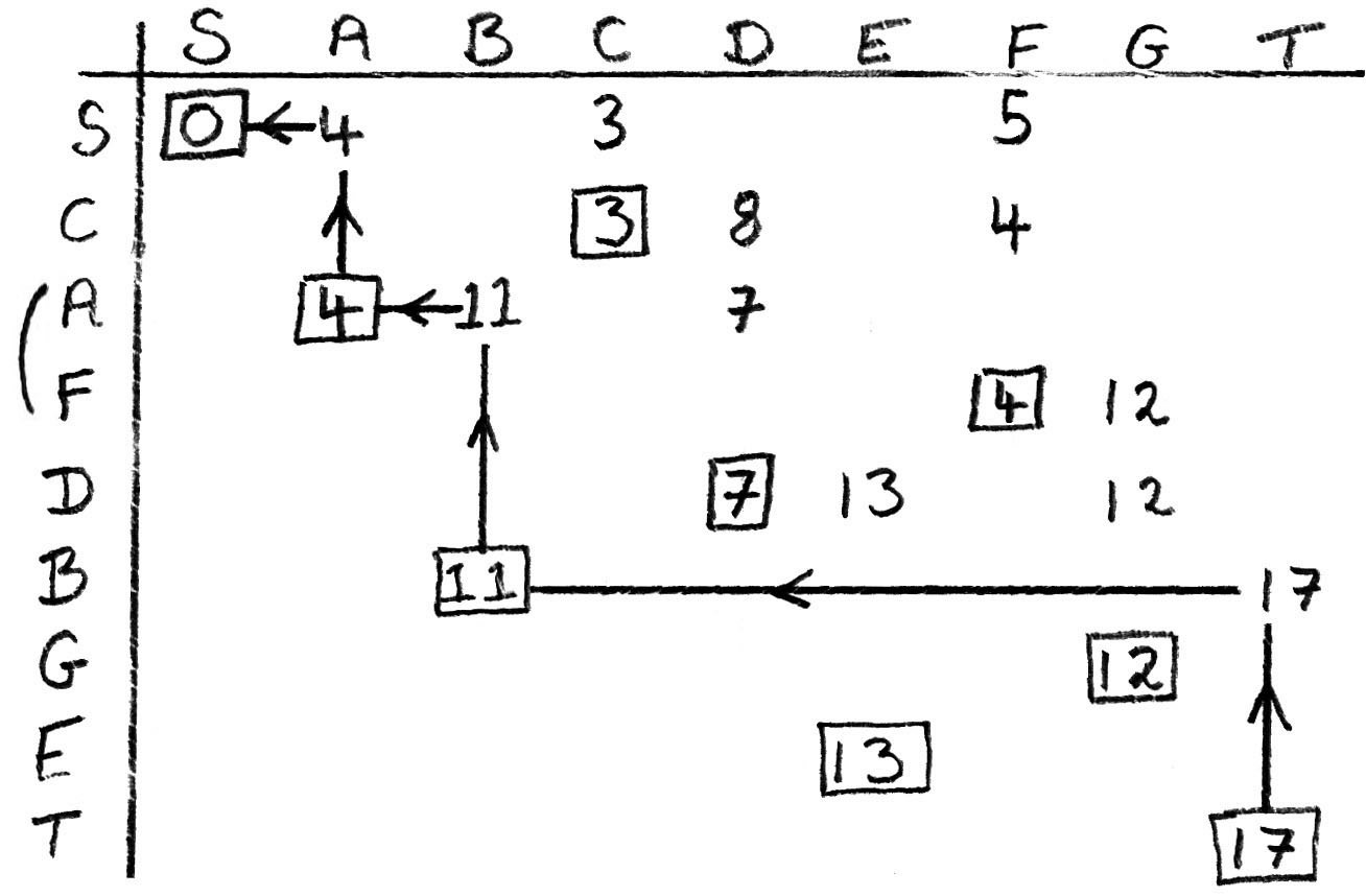 to find a lower bound for the travelling salesman problem, we add to that the two smallest weights of edges to D, i.e. 15 +16, giving 64 M1A1