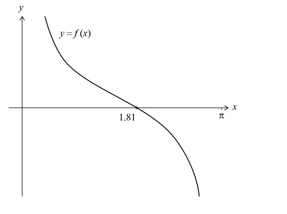 (ii) Sketch the graph of \( y = f(x) \), clearly indicating the coordinates of the \( x \)-intercept.