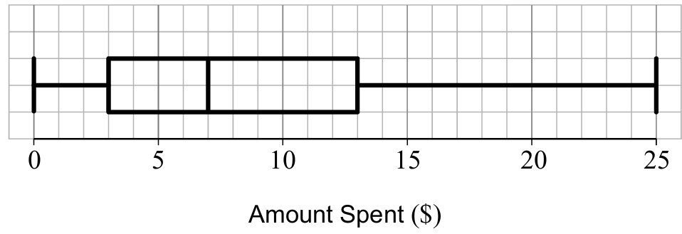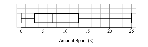 From the box and whisker diagram, 75% of the audience spent between $3 and $25.