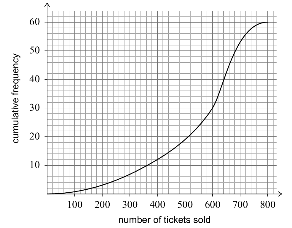 (i) the median number of tickets sold;