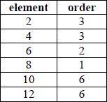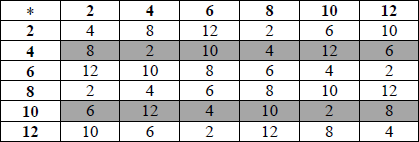 The binary operator multiplication modulo 14, denoted by \( * \), is defined on the set S = {2, 4, 6, 8, 10, 12}.