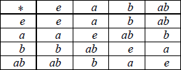 hence {e , a , b , ab} forms a group G under the operation \( * \) AG