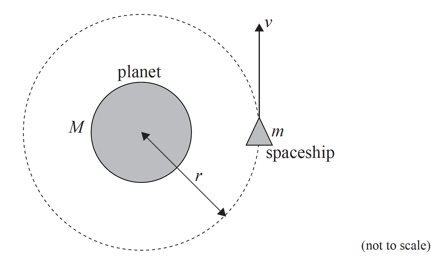 Deduce that the speed of the spaceship is \(v = \sqrt {\frac{{GM}}{r}} \).[2]