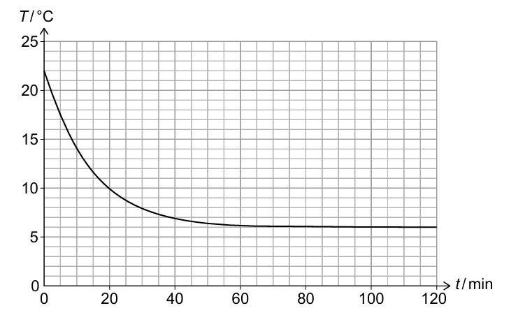 From graph: T₁ = 22°C = 295 K at t = 0, T₂ = 13°C = 286 K at t = 120 min ✓