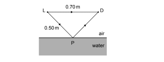(ii) Calculate path difference: Path LPD \(= 0.50 + 0.50 = 1.00\,m\). Path LD \(= 0.70\,m\).