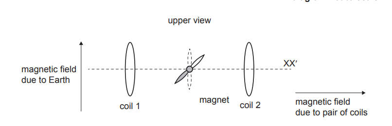 (b) Explain why the students align the axis XX′ of the coils in the east–west direction.