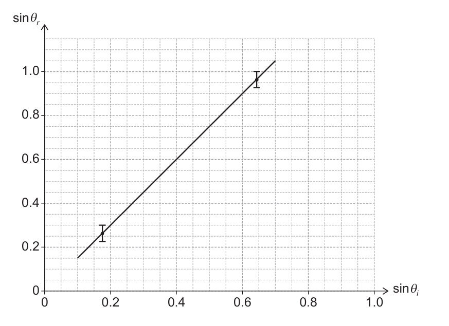(iii) Determine the refractive index of the glass and its absolute uncertainty.